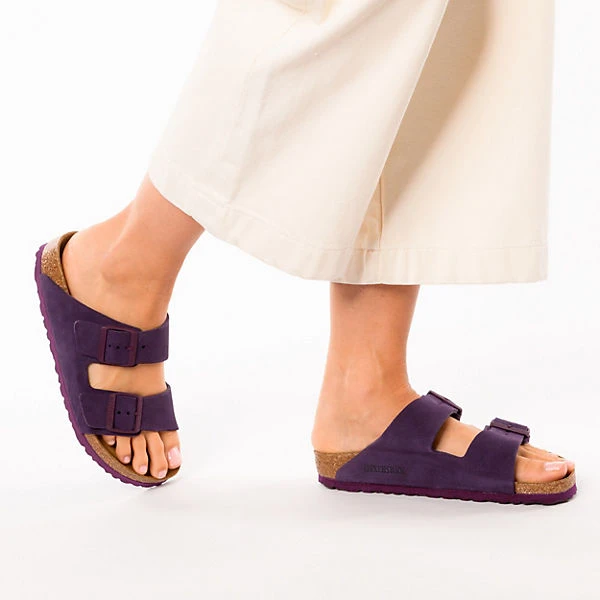 Auf Schritt und Tritt: Die Pantoletten der Marke BIRKENSTOCK begleiten Sie perfekt durch den Tag. Für ein angenehmeres Tragegefühl besteht das Fußbett aus echtem Leder. Die Decksohle ist vorgeformt, wodurch der Fuß unterstützt und gefordert wird. Die raue Oberfläche des Veloursleders sorgt für den besonderen Look und bietet zusätzlich eine bessere Atmungsaktivität als glattes Leder. In die Schuhe kann ganz schnell hineingeschlüpft werden.