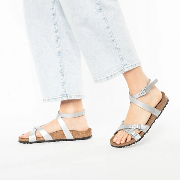 Birkenstock ist allseits beliebt und hoch begehrt. Das gilt natürlich auch für die Blanca BF Sandalen, die den gewohnten Komfort mit einem Knöchel-Riemchen verbinden – ausgezeichnet, denn so haben wir in dem luftigen Sommer-Style gleich noch mehr Halt. Dazu kommt dann noch das von Birkenstock bewährte, anatomisch vorgeformte Kork-Latex-Fußbett mit weichem Lederüberzug und das hochwertige Kunstleder Birko Flor im Metallic Colorway – wir würden sagen: Der Sommer kann kommen!