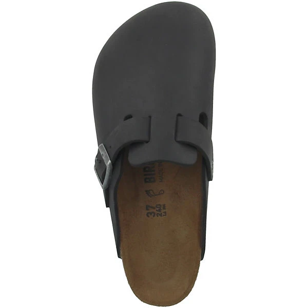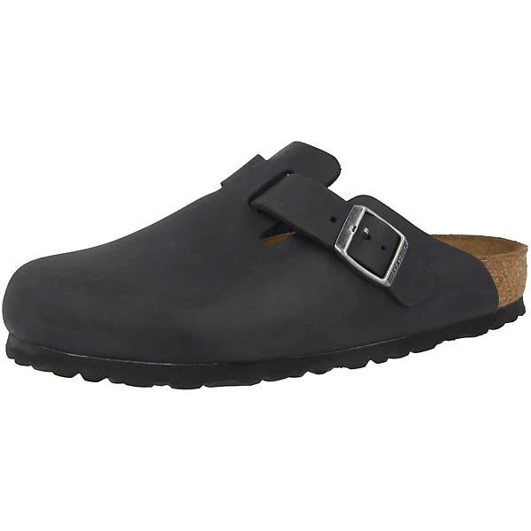 Der Boston Clog ist mit geöltem Nubukleder als Obermaterial ausgestattet. Es verfügt über eine gleichmäßige glatte und robuste Oberfläche. Die Laufsohle aus EVA-Material verspricht eine angenehme Schrittdämpfung und ist resistent gegen beständige Hitze, Öle oder Lösungsmittel. Für weiteren Tragekomfort sorgt das Birkenstock Fußbett aus Kork. Die Sandalen sind beliebt für Beruf und Freizeit.
