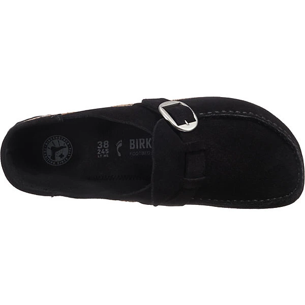 Für ein besonderes Tragegefühl: Die Clogs von BIRKENSTOCK. Die Decksohle ist vorgeformt, wodurch der Fuß gefordert und unterstützt wird. Das Fußbett besteht aus atmungsaktivem Leder, das ein komfortables Trageerlebnis begünstigt. Die raue Oberfläche des Veloursleders erzeugt den besonderen Look und bietet zusätzlich eine höhere Atmungsaktivität als Glattleder. Das Modell kommt ohne jeglichen Verschluss aus, sodass im Handumdrehen hineingeschlüpft werden kann.