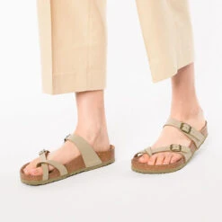 Tieffußbett Pantolette für Damen aus dem Hause Birkenstock aus einem feinen hochwertigem Nubukleder.Die angeraute Oberfläche ist besonders weich und gibt dem Leder ein angenehmes Gefühl. Das exzellente Innenleben aus bestem Leder gibt Ihnen ein erholsames Gefühl an langen Tagen. Das Original BIRKENSTOCK-Fußbett ist mit Leder bezogen und unterstützt mit seinen anatomischen Ausformungen Ihre Füße optimal bei der natürlichen Schrittabwicklung. Die Weite entspricht der schmalen Birkenstock Form und ist am Besten für normal breite Füße geeignet. Der Absatz ist durchgehend flach , Über eine Schließe läßt sich der Schuh bequem an- und ausziehen. Die Schuhgröße fällt regulär aus. BIRKENSTOCK ist noch bis heute ein Familienunternehmen, das Traditionen pflegt. BIRKENSTOCK steht für erstklassige Produkte, die mit viel Liebe zum Detail und einem hohen Anteil an Handarbeit sorgfältigst hergestellt werden.Grundsatz einer jeden BIRKENSTOCK Generation ist es, die Vorgaben der Natur als Maßstab zu betrachten, um die natürlichen Funktionen des Fußes zu fördern und zu erhalten.