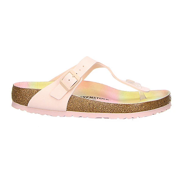 Die light rosé farbene Birkenstock Pantolette Modell Gizeh vegan überzeugt als absolute Trendpantolette, denn dieser Klassiker wurde für die vegane Kollektion ausschließlich aus pflanzlichen und synthetischen Materialien hergestellt. Das für Birkenstock typische Kork-Latex-Fußbett mit seinen anatomischen Ausformungen unterstützt und entlastet den Fuß haltgebend. Gelenke und Rücken werden bei diesem veganen Zehentrenner geschont.