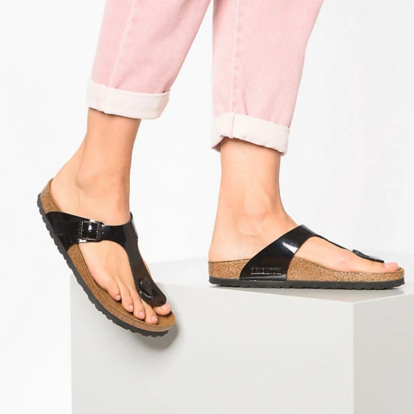 Birkenstock Gizeh Birkoflor Lacksynthetik Zehentrenner Schmal – Schwarz