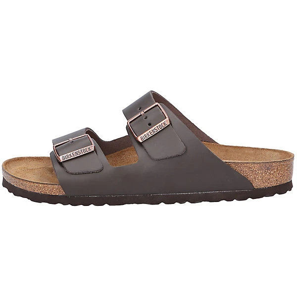 Den kennen alle Männer: Das Modell ARIZONA SCHMALEFORM der Marke Birkenstock ist ein Klassiker unter den Pantoletten. Angenehm weich liegt das hochwertige Glattleder am Fuß und verleiht dem Schuh einen besonderen Look. Ebenso glänzt das Modell durch eine weiche Lederausstattung. Das Original BIRKENSTOCK-Fußbett ist mit Leder bezogen und unterstützt mit seinen anatomischen Ausformungen Ihre Füße optimal bei der natürlichen Schrittabwicklung. Die Weite entspricht der schmalen Birkenstock Form und ist am Besten für normal breite Füße geeignet. Der Absatz ist durchgehend flach , Anpassen an jede Fußform ist mit einer variablen Schnalle bequem möglich. Die Schuhgröße fällt regulär aus. BIRKENSTOCK ist noch bis heute ein Familienunternehmen, das Traditionen pflegt. BIRKENSTOCK steht für erstklassige Produkte, die mit viel Liebe zum Detail und einem hohen Anteil an Handarbeit sorgfältigst hergestellt werden.Grundsatz einer jeden BIRKENSTOCK Generation ist es, die Vorgaben der Natur als Maßstab zu betrachten, um die natürlichen Funktionen des Fußes zu fördern und zu erhalten.
