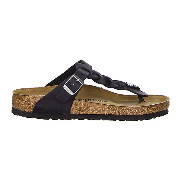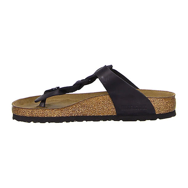 Die schwarze Birkenstock Pantolette Modell Gizeh Braided aus Fettleder im Vintage-Look überzeugt als trendiger Zehentrenner. Das für Birkenstock typische Kork-Latex-Fußbett mit seinen anatomischen Ausformungen unterstützt und entlastet den Fuß haltgebend. Gelenke und Rücken werden geschont.