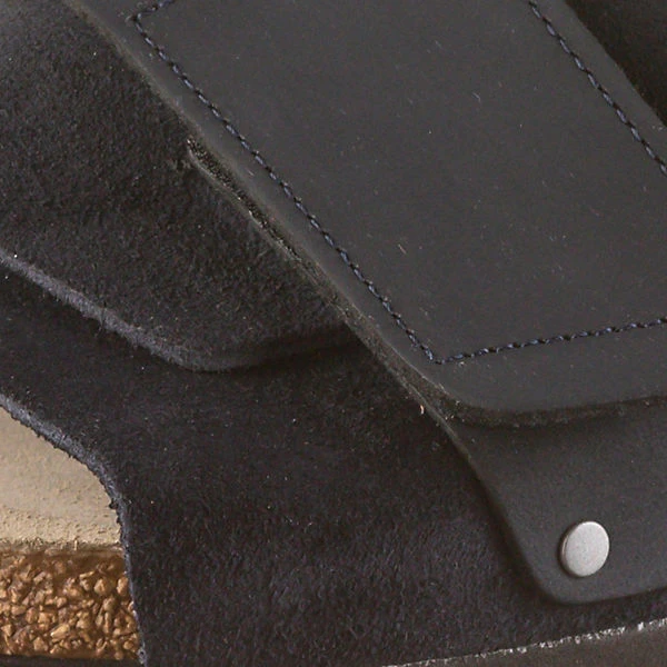 Die blaue Birkenstock Pantolette Modell Kyoto aus Velour- und Nubukleder überzeugt mit erstklassigem Tragekomfort auf der Basis natürlicher Materialien. Das für Birkenstock typische Kork-Latex-Fußbett mit seinen anatomischen Ausformungen unterstützt und entlastet den Fuß haltgebend. Gelenke und Rücken werden geschont. Gleichzeitig trainiert es die Beinmuskulatur, was Ihre Gesundheit unterstützt und Ihr Wohlbefinden steigert.