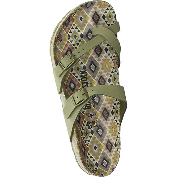 Birkenstock Damen Pantoletten/ Zehentrenner MAYARI Grün Synthetik – 2 verstellbare Schnallen zur optimalen Anpassung – komfortable Fußbettung aus Naturkorkfür ganztägigen Tragekomfort – EVA Laufsohle