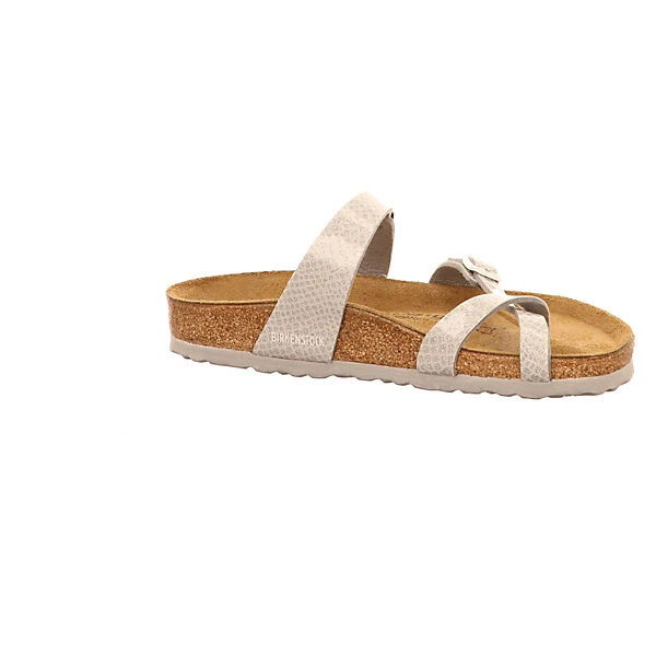 Damen Pantoletten von Birkenstock aus angenehm weichen Birkoflor. Innen ist der Schuh mit Kunstleder augestattet. Der Schuh hat eine normale Weite. Der Absatz ist durchgehend flach. Die Laufsohle ist aus Gummi. Über die paraktische Schließe kann der Schuh dem Fuß optimal angepasst werden. Die Schuhgröße fällt regulär aus.