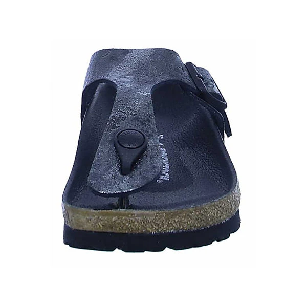 Damen Pantoletten von Birkenstock aus angenehm weichem und hochertigem Leder. Innen ist der Schuh mit einem cromfrei gegerbtem Leder ausgestattet. Der Schuh hat eine normale Weite. Der Absatz ist durchgehend flach. Die Laufsohle ist aus Krepp. Die Schuhgröße fällt regulär aus.