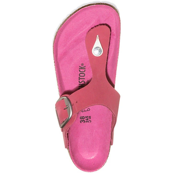 Bequeme Zehentrenner mit Lederriemen und Zehenschlaufe; Innenseite mit hautfreundlichem und strapazierfähigem Birko-Flor® ausgestattet; an Rist und Vorderfuß durch extra große, verstellbare Dornschnallen aus Metall; anatomisch geformtes Kork-Latex-Fußbett; rutschfeste EVA-Sohle mit Profil; Obermaterial aus Birko-Flor® Nubuk; Innensohle aus Leder; profilierte EVA-Außensohle.