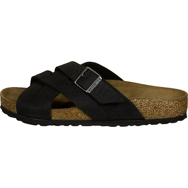 Bekannt für seine vielfältigen Modelle in unterschiedlichen Farben ist Birkenstock schon lange. Mit der Lugano Sandale kommt nun ein neues, stylisches Exemplar für den Sommer zu uns in den Shop: Der klassische Slipper überzeugt dabei mit kunstvoll verschlungenen Riemen und der bewährten Metall-Dornschließe auf optischer Ebene. Neben der Optik besticht der Treter aber auch mit den klassischen Birkenstock-Features wie dem anatomisch geformten Kork-Latex-Fußbett, der rutschfesten EVA-Sohle und dem Veloursleder-Bezug der Innensohle.
