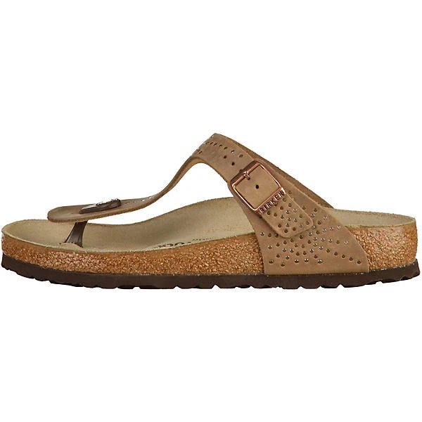 Das Modell Gizeh von Birkenstock hat einen verstellbarer Riemen und ein anatomisch geformtes Fußbett.Mit modischen Metallnieten.