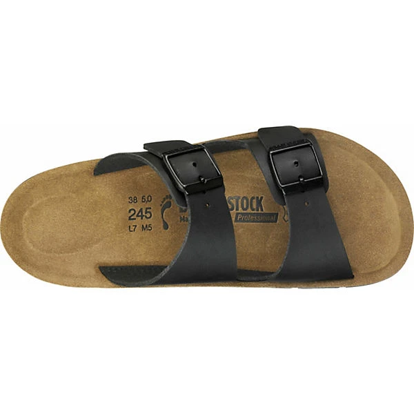 Komfort wird bei BIRKENSTOCK® großgeschrieben. Das gilt erst recht für alle Modelle, die für den anspruchsvollen, zeitintensiven Einsatz in professioneller Umgebung genutzt werden. Das anatomisch geformte Original BIRKENSTOCK® Fußbett mit geschmeidigem Velourslederbezug ist mit einem zusätzlichen Latex-Fersenkissen ausgestattet und trägt auch bei Fußproblemen zu einem angenehmen Tragegefühl bei. Für Sicherheit und Komfort sorgt die luftgepolsterte, öl- und fettbeständige PU (Polyurethan)-Sohle mit rutschhemmendem, 2,5 mm tiefem Profil. Der niedrige Absatz dämpft die Schritte zusätzlich und trägt so rund um die Uhr zu einem besonders bequemen und sicheren Auftritt bei.